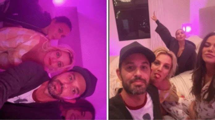 Kim Kardashian fue la encargada de mostrar el detrás de escena de la reunión. En una de sus historias de Instagram, publicó una selfie tomada sobre una cama donde se la ve junto a Britney, Khloé y Hudson.