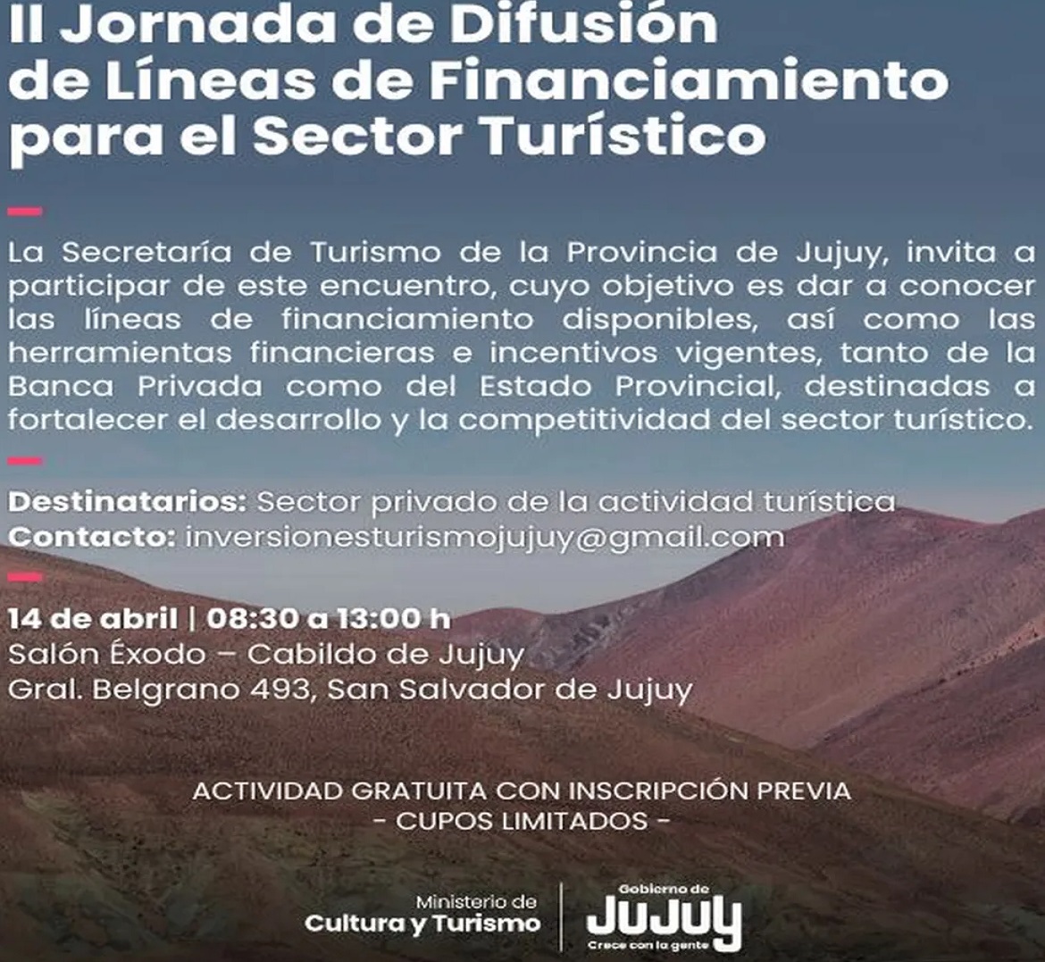 La capacitación se llevará a cabo el próximo 14 de abril, de 08:30 a 13:00 horas, en el Salón Éxodo del Cabildo (Gral. Belgrano 493). Durante la mañana, especialistas en materia crediticia asesorarán a los asistentes sobre cómo aplicar a estas herramientas de fomento que buscan elevar el estándar de calidad de la oferta local. La actividad es gratuita con cupos limitados, por lo que es requisito inscribirse previamente a través del código QR oficial o vía correo a inversionesturismojujuy@gmail.com. Esta iniciativa forma parte de las políticas públicas para promover la inversión privada, asegurando que la provincia mantenga su liderazgo mediante la innovación y la inversión genuina.