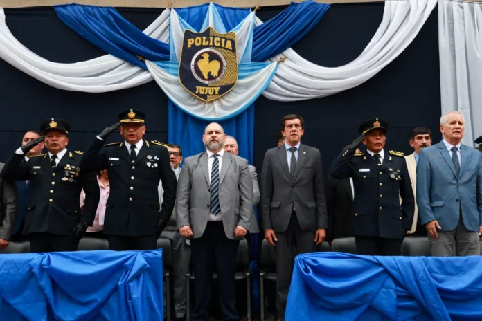 Por otra parte, el gobernador indicó que se abordaron las amenazas en escuelas de la provincia, donde se se implementan protocolos de seguridad en colaboración con el Ministerio de Educación para garantizar el resguardo de los estudiantes y de la comunidad en su conjunto. En este sentido, Sadir solicitó la atención y corresponsabilidad de padres y personal educativo para prevenir actos de violencia. Estuvieron presentes en el acto que se desarrolló en instalaciones de la Central de Policía de la Provincia el presidente de la Corte Suprema de Justicia de Jujuy, Federico Otaola; el secretario de Seguridad Pública, Carlos Gil Urquiola; funcionarios de la cartera de Seguridad; familiares e invitados.