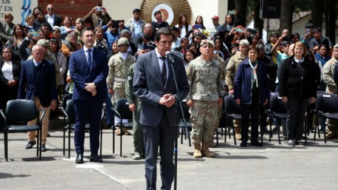 El gobernador de la Provincia, Carlos Sadir, recibió al ministro de Defensa de la Nación, Luis Petri, y juntos participaron en el Grupo de Artillería de Montaña 5 del acto de bienvenida a los 274 aspirantes a ingresar al Ejército Argentino.