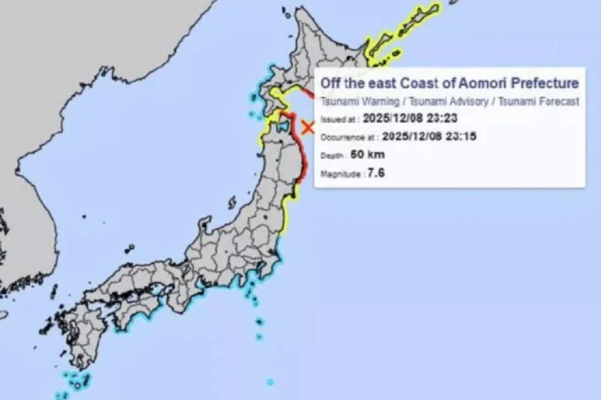 La Agencia Meteorológica de Japón (JMA) emitió el alerta de tsunami para las zonas costeras de las prefecturas de Aomori, Hokkaido e Iwate, con olas de hasta tres metros.
